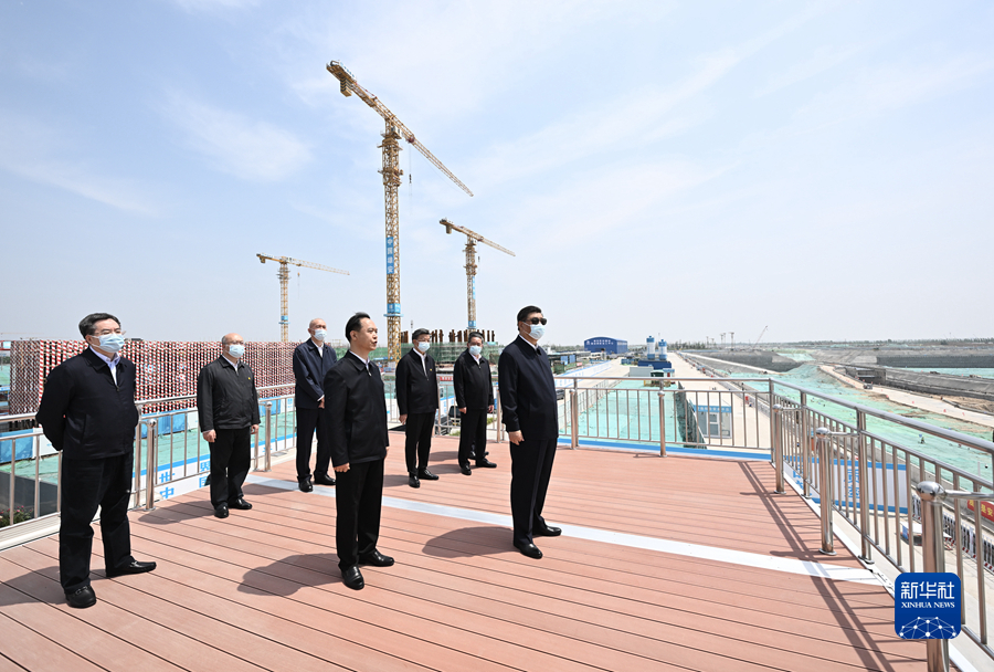 5月10日,中共中央總書記、國家主席、中央軍委主席習近平在河北省雄安新區考察,并主持召開標準質量推進雄安新區建設座談會。這是10日上午,習近平在雄安城際站及國貿中心項目建設現場考察。新華社記者 燕雁 攝